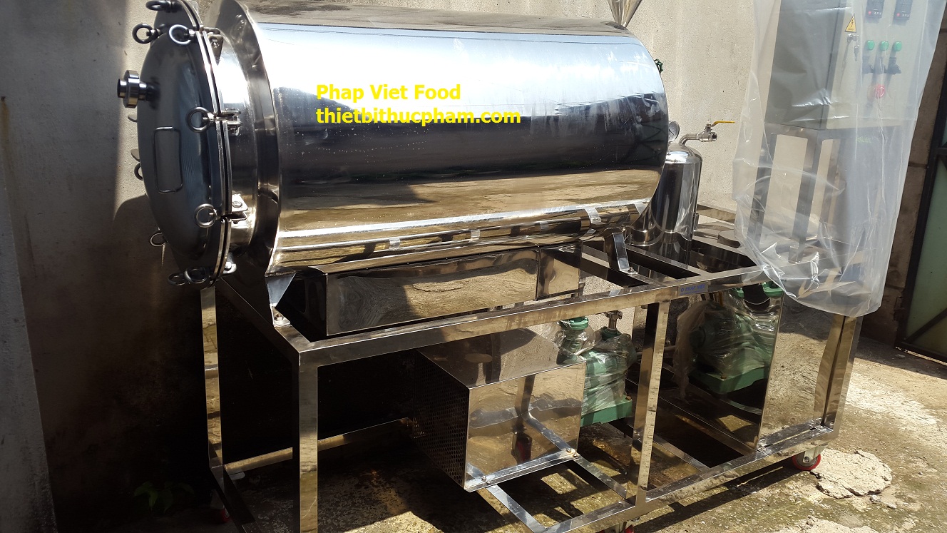 Máy sấy chân không do công ty TNHH Công Nghệ Thiết Bị Thực Phẩm Pháp Việt chế tạo bằng vật liệu inox 304, 316 sáng bóng, sạch sẽ, vệ sinh an toàn thực phẩm, độ kín áp cao, độ chân không 720-740mmHg,